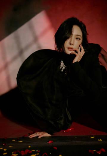 先来看看黑色造型,杨幂化身优雅高贵的黑天鹅,修身剪裁的礼服勾勒出完美曲线,配上她标志性的眼神杀,整个人散发着一种神秘又高级的气场。不得不说,这种暗黑系的风格在她身上简直浑然天成,每一帧都像是电影画面。