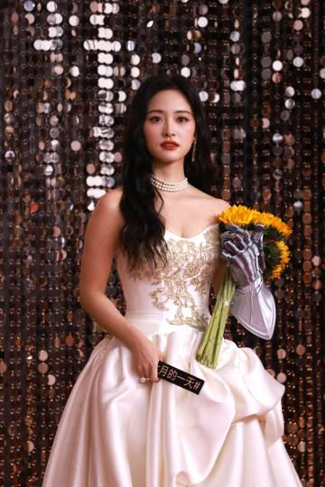沈月这次选择了一身简约又不失设计感的礼服,配上她标志性的甜美笑容,整个人散发着青春活力的气息。最绝的是她手里那束鲜花,不是那种夸张的大花束,而是一小捧精致的花束,跟她整个人的气质特别搭。